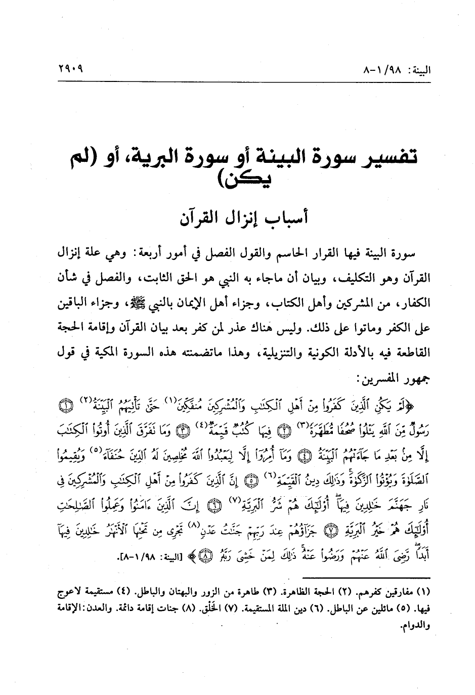 تفسير سورة البينة أو سورة البرية، أو (لم يكن)