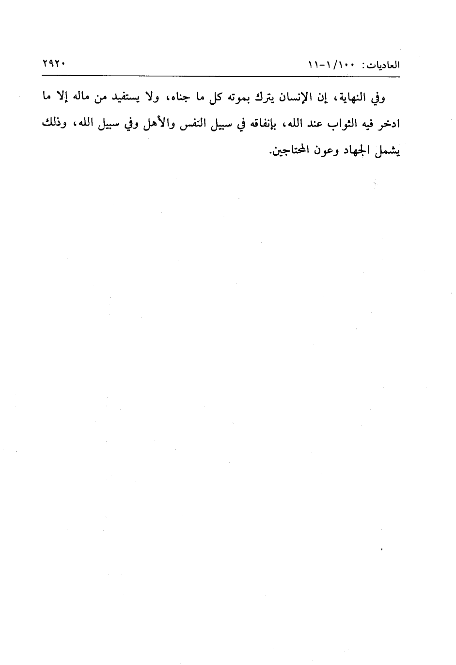 وفي النهاية، إن الإنسان يترك بموته كل ما جناه، ولا يستفيد من ماله إلا ما ادخر فيه الثواب عند الله، بإنفاقه في سبيل النفس والأهل وفي سبيل الله، وذلك يشمل الجهاد وعون المحتاجين.