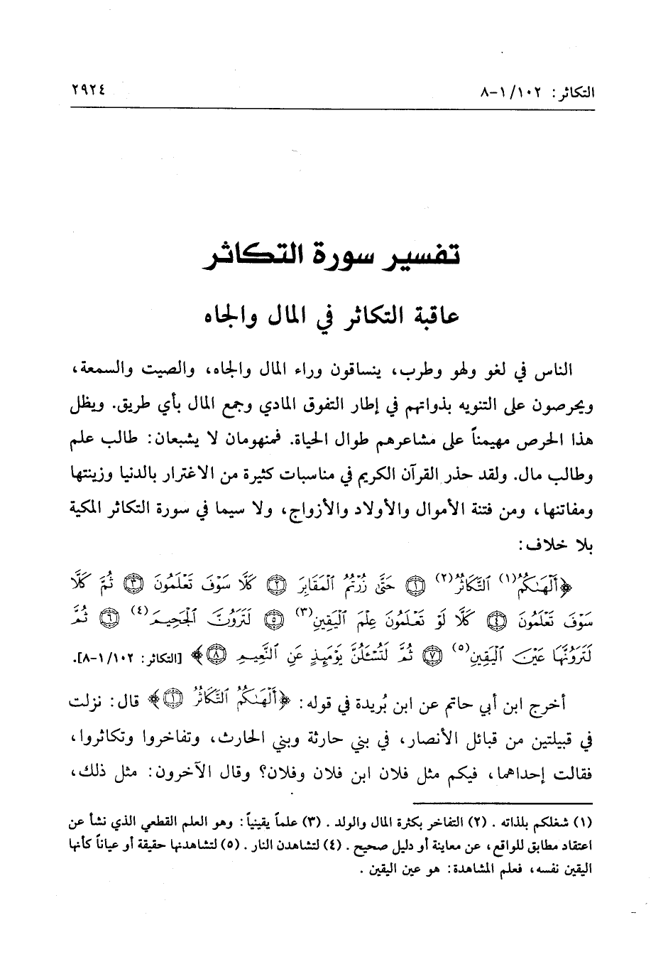 «1» «2» «3» «4» «5» [التكاثر: 102/ 1- 8] .
