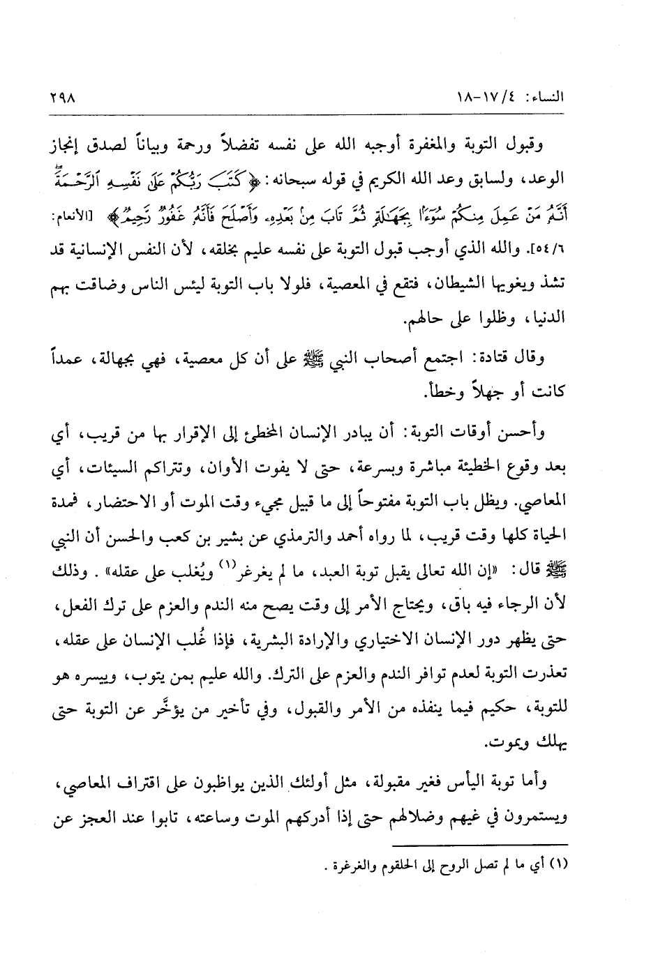 (1) أي ما لم تصل الروح إلى الحلقوم والغرغرة.