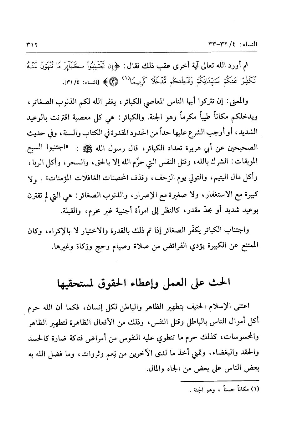 «1» [النساء: 4/ 31] .