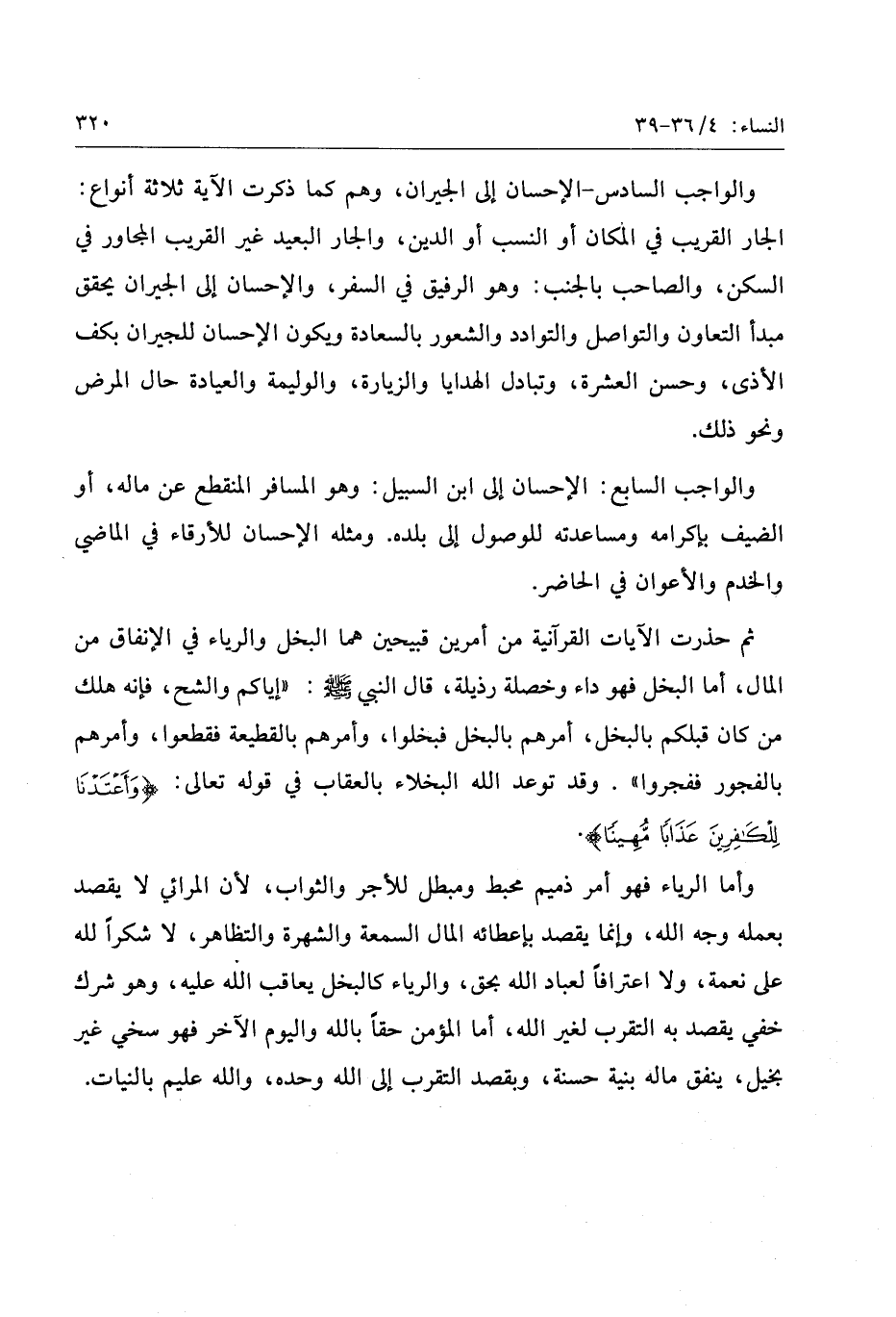والواجب السادس- الإحسان إلى الجيران، وهم كما ذكرت الآية ثلاثة أنواع: