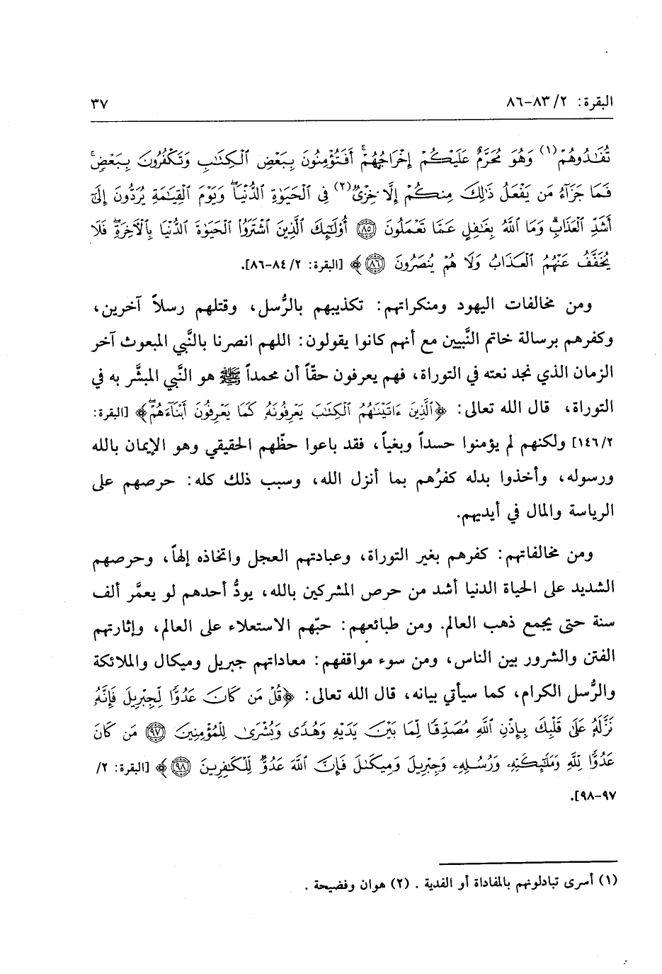 ومن مخالفات اليهود ومنكراتهم: تكذيبهم بالرّسل، وقتلهم رسلا آخرين، وكفرهم برسالة خاتم النّبيين مع أنهم كانوا يقولون: اللهم انصرنا بالنّبيّ المبعوث آخر الزمان الذي نجد نعته في التوراة، فهم يعرفون حقّا أن محمدا صلّى الله عليه وسلم هو النّبي المبشّر به في التوراة، قال الله تعالى: الَّذِينَ آتَيْناهُمُ الْكِتابَ يَعْرِفُونَهُ كَما يَعْرِفُونَ أَبْناءَهُمْ [البقرة: