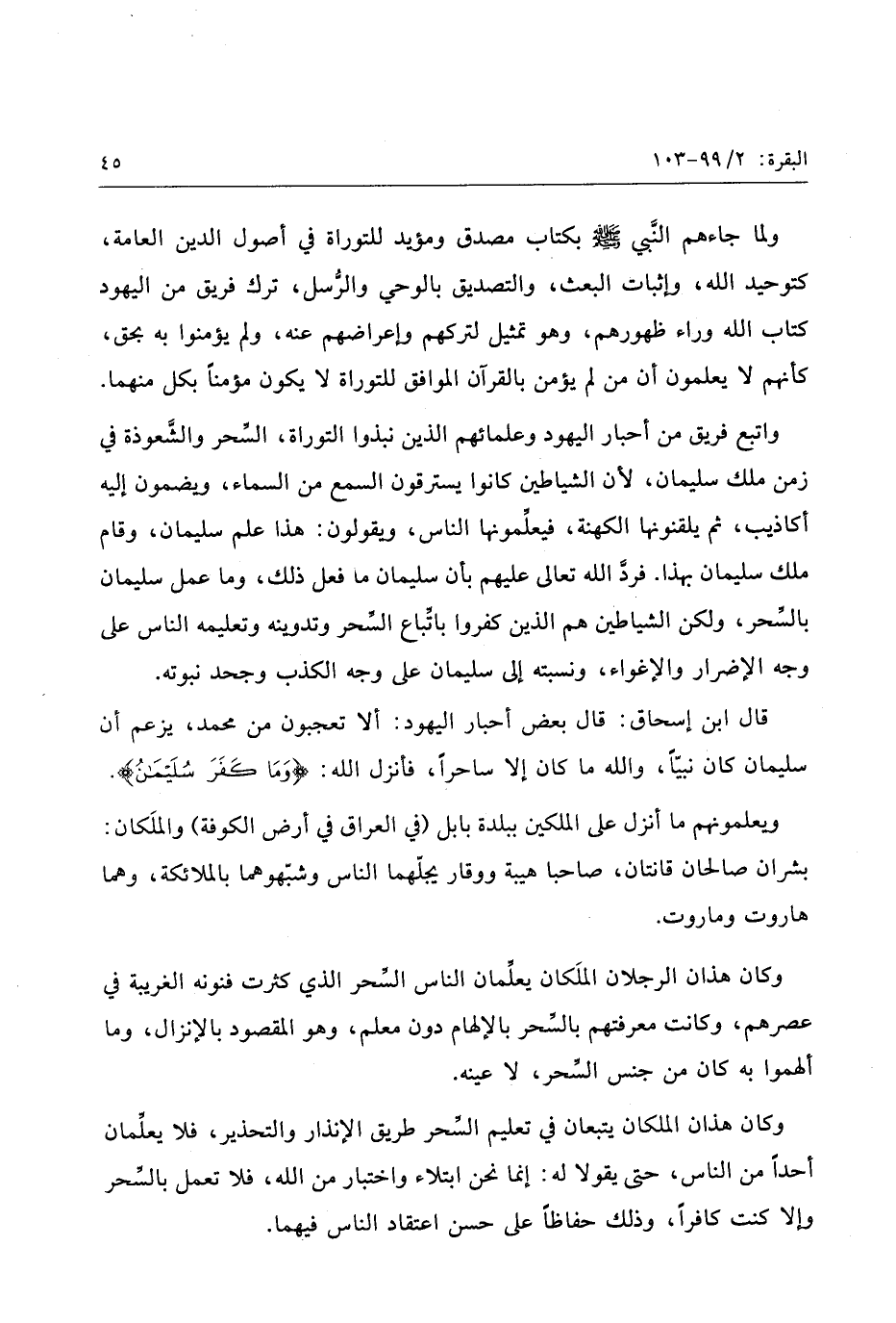 قال ابن إسحاق: قال بعض أحبار اليهود: ألا تعجبون من محمد، يزعم أن سليمان كان نبيّا، والله ما كان إلا ساحرا، فأنزل الله: وَما كَفَرَ سُلَيْمانُ.