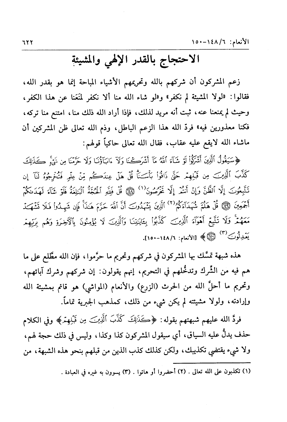 «1» «2» «3» [الأنعام: 6/ 148- 150] .