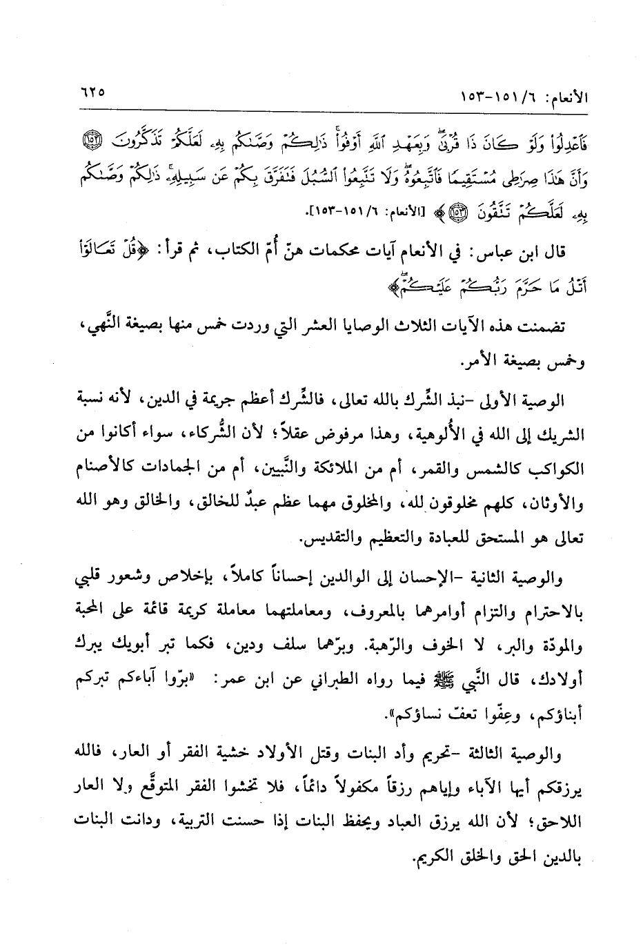 [الأنعام: 6/ 151- 153] .