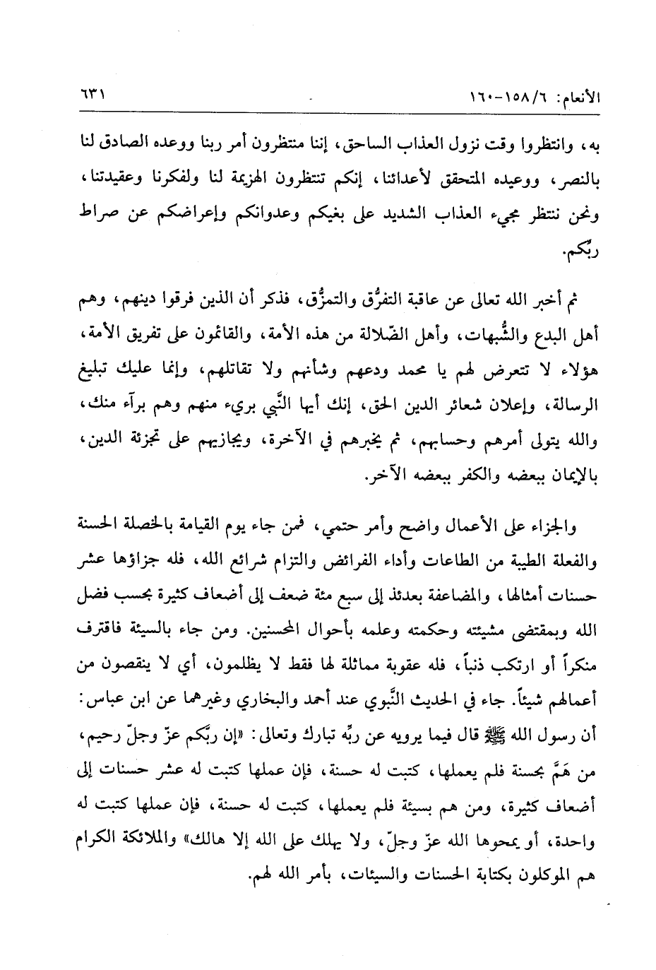 ثم أخبر الله تعالى عن عاقبة التفرّق والتمزّق، فذكر أن الذين فرقوا دينهم، وهم أهل البدع والشّبهات، وأهل الضّلالة من هذه الأمة، والقائمون على تفريق الأمة، هؤلاء لا تتعرض لهم يا محمد ودعهم وشأنهم ولا تقاتلهم، وإنما عليك تبليغ الرسالة، وإعلان شعائر الدين الحق، إنك أيها النّبي بريء منهم وهم برآء منك، والله يتولى أمرهم وحسابهم، ثم يخبرهم في الآخرة، ويجازيهم على تجزئة الدين، بالإيمان ببعضه والكفر ببعضه الآخر.