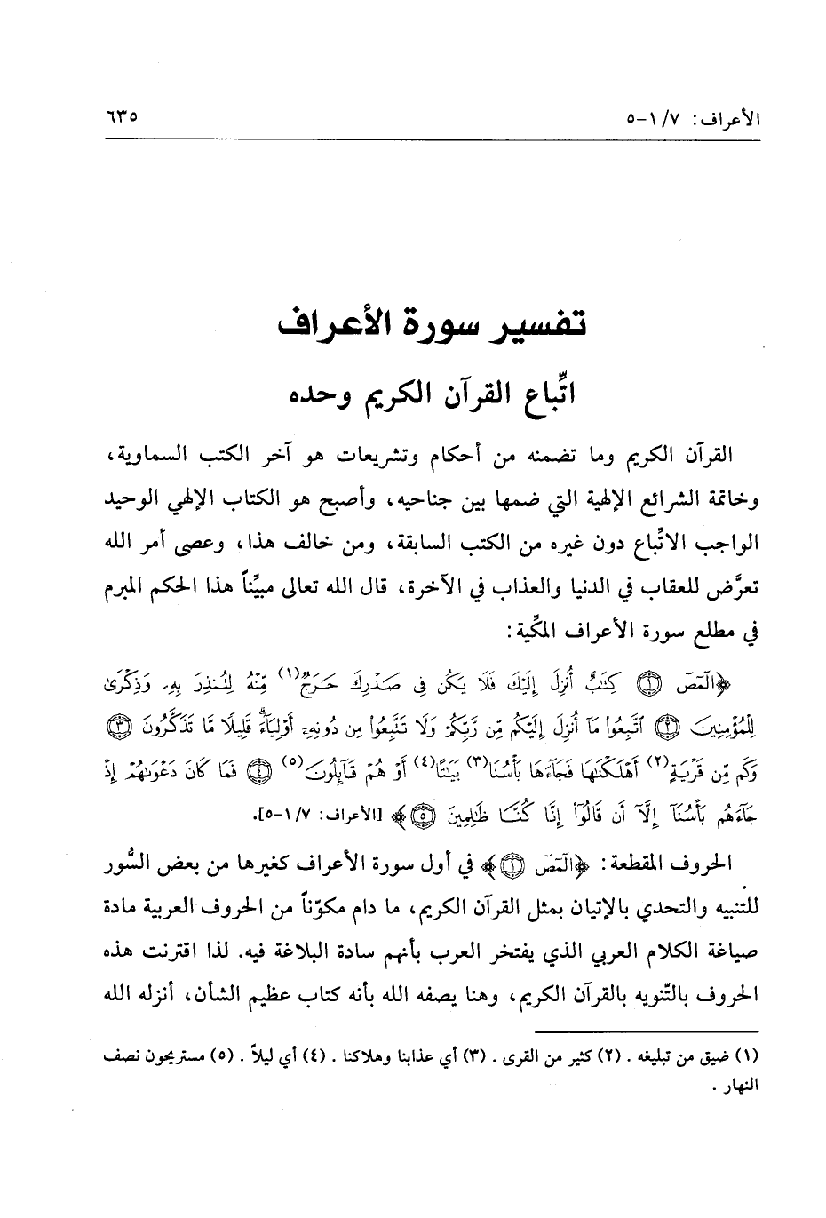 «1» «2» «3» «4» «5» [الأعراف: 7/ 1- 5] .