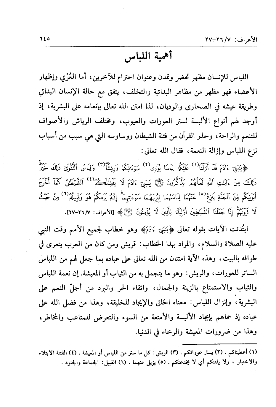 «1» «2» «3» «4» «5» «6» [الأعراف: 7/ 26- 27] .