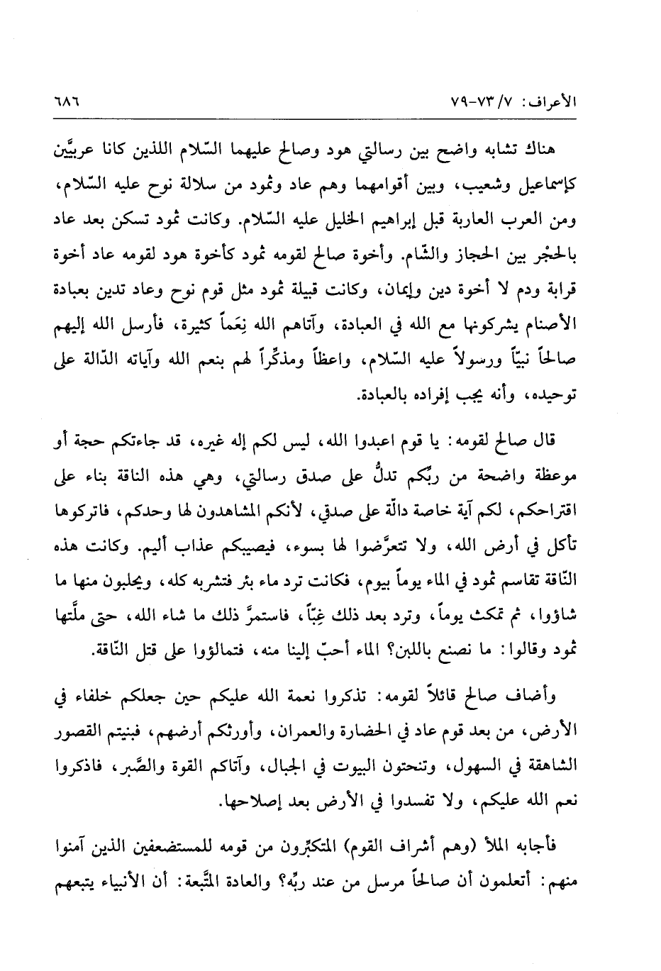 قال صالح لقومه: يا قوم اعبدوا الله، ليس لكم إله غيره، قد جاءتكم حجة أو موعظة واضحة من ربّكم تدلّ على صدق رسالتي، وهي هذه الناقة بناء على اقتراحكم، لكم آية خاصة دالّة على صدقي، لأنكم المشاهدون لها وحدكم، فاتركوها تأكل في أرض الله، ولا تتعرّضوا لها بسوء، فيصيبكم عذاب أليم. وكانت هذه النّاقة تقاسم ثمود في الماء يوما بيوم، فكانت ترد ماء بئر فتشربه كله، ويحلبون منها ما شاؤوا، ثم تمكث يوما، وترد بعد ذلك غبّا، فاستمرّ ذلك ما شاء الله، حتى ملّتها ثمود وقالوا: ما نصنع باللبن؟ الماء أحبّ إلينا منه، فتمالؤوا على قتل النّاقة.
