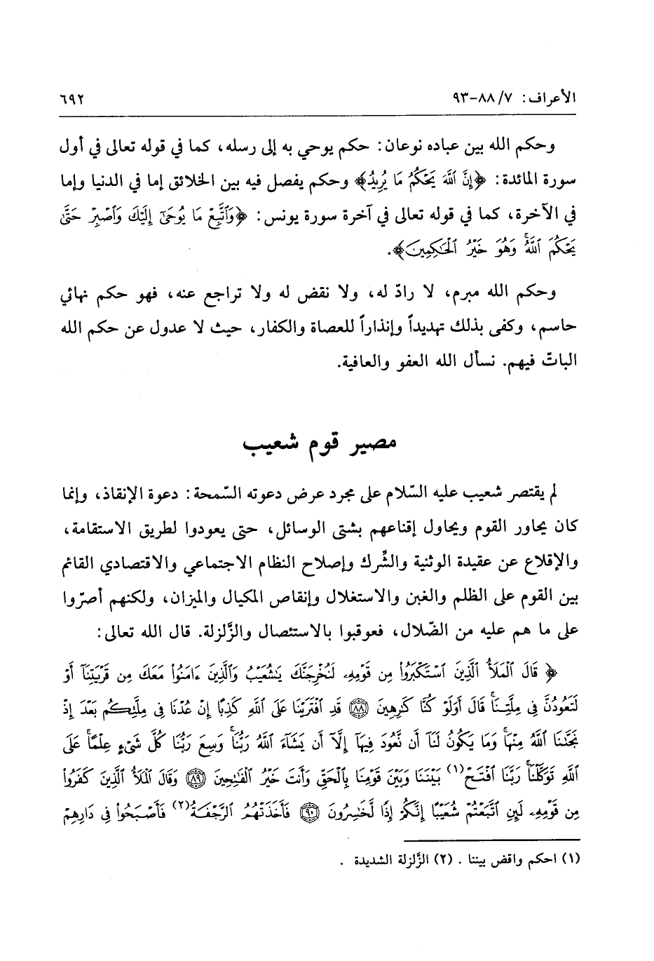 [سورة الأعراف (7) : الآيات 88 الى 93]