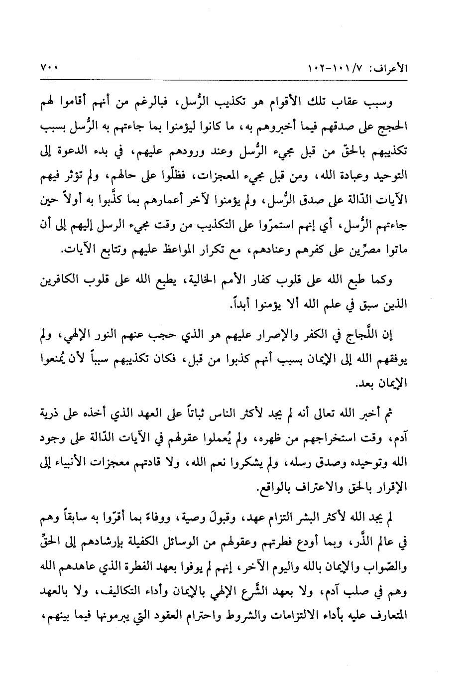 لم يجد الله لأكثر البشر التزام عهد، وقبول وصية، ووفاء بما أقرّوا به سابقا وهم في عالم الذّر، وبما أودع فطرتهم وعقولهم من الوسائل الكفيلة بإرشادهم إلى الحقّ والصّواب والإيمان بالله واليوم الآخر، إنهم لم يوفوا بعهد الفطرة الذي عاهدهم الله وهم في صلب آدم، ولا بعهد الشّرع الإلهي بالإيمان وأداء التكاليف، ولا بالعهد المتعارف عليه بأداء الالتزامات والشروط واحترام العقود التي يبرمونها فيما بينهم،