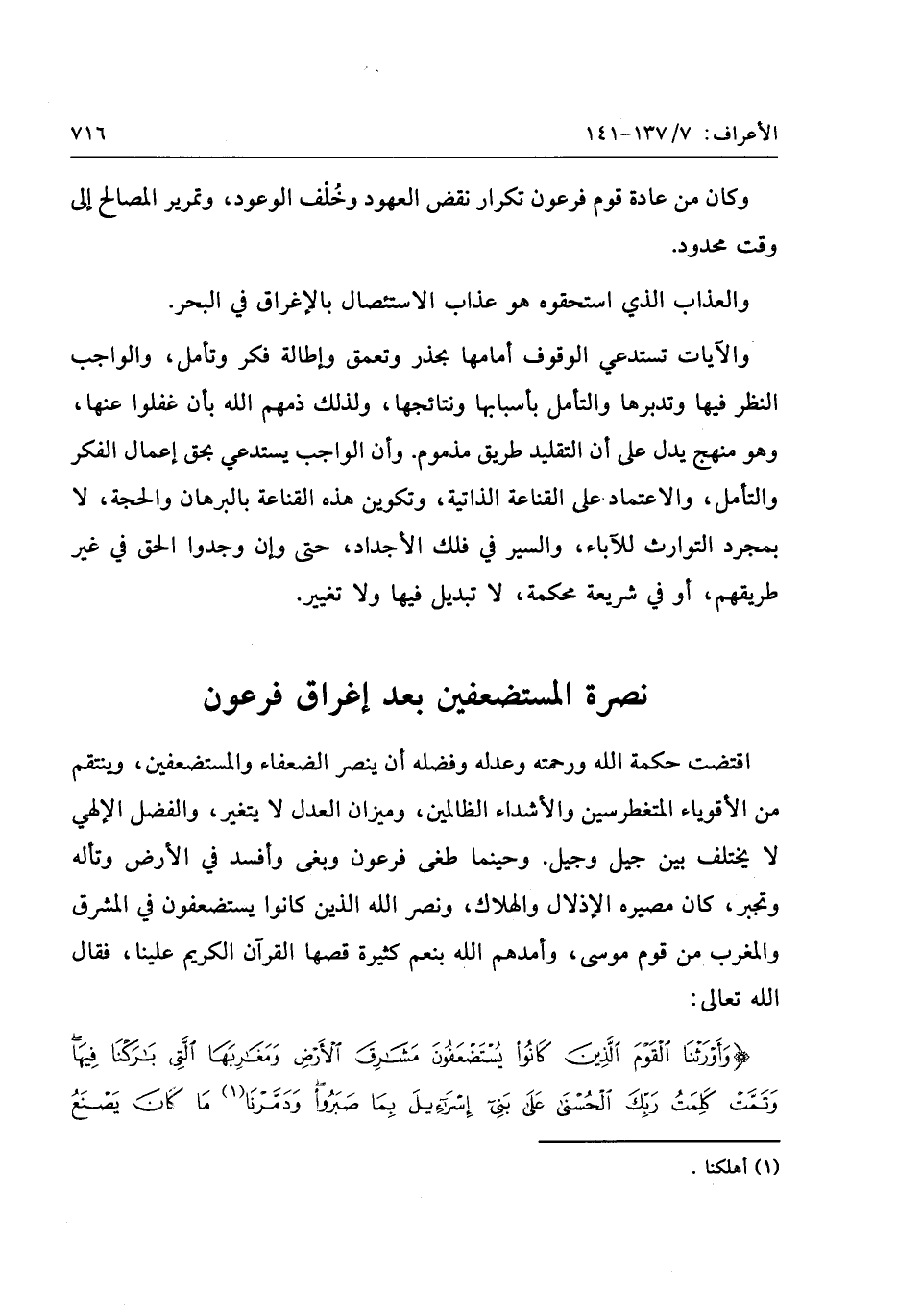 [سورة الأعراف (7) : الآيات 137 الى 141]
