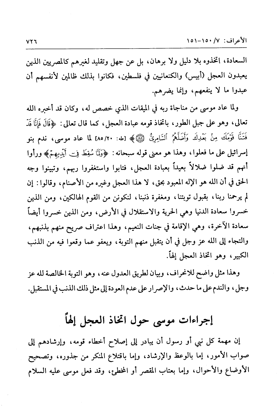 إن مهمة كل نبي أو رسول أن يبادر إلى إصلاح أخطاء قومه، وإرشادهم إلى صواب الأمور، إما بالوعظ والإرشاد، وإما باقتلاع المنكر من جذوره، وتصحيح الأوضاع والأحوال، وإما بعتاب المقصر أو المخطئ، وقد فعل موسى عليه السلام