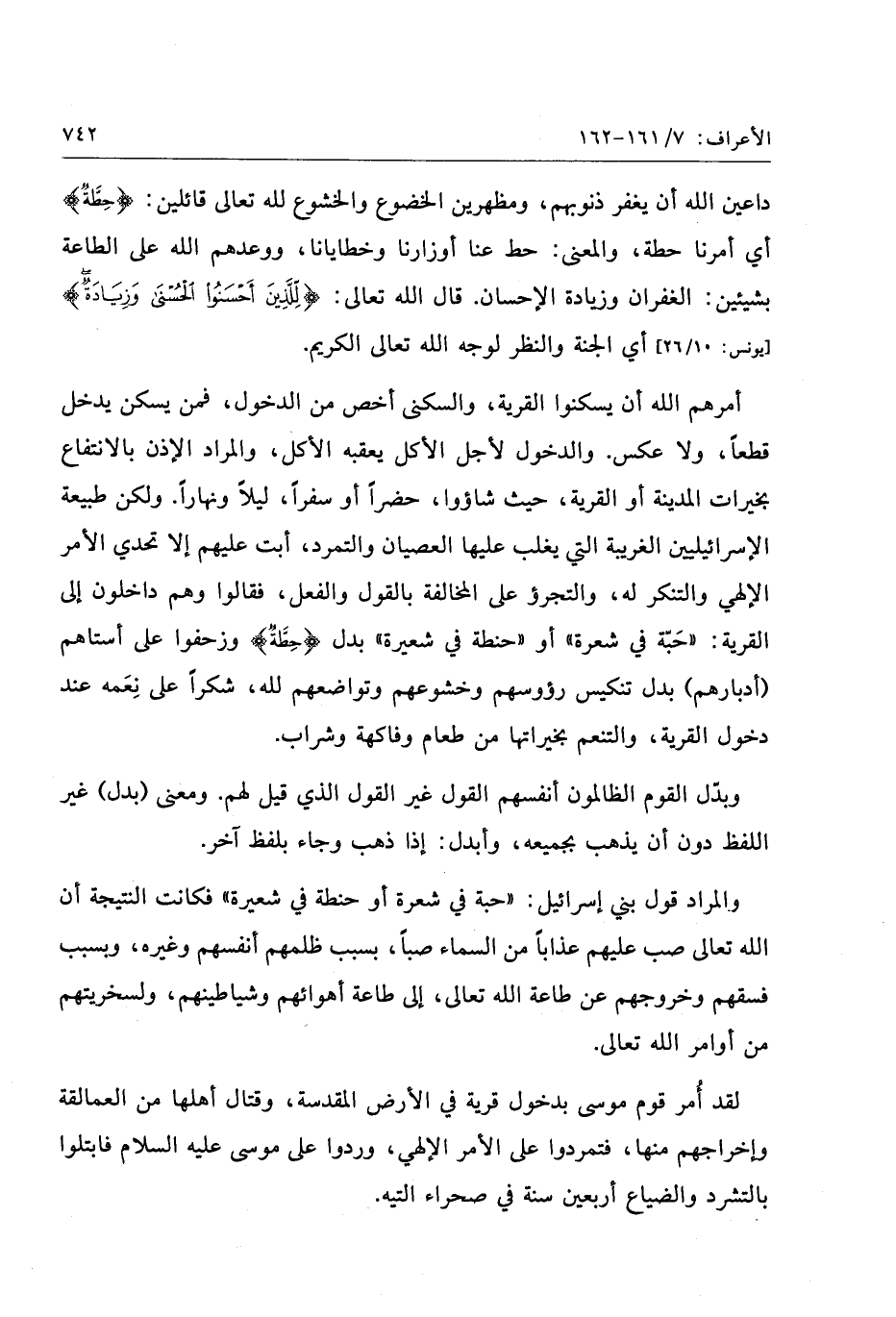 أمرهم الله أن يسكنوا القرية، والسكنى أخص من الدخول، فمن يسكن يدخل قطعا، ولا عكس. والدخول لأجل الأكل يعقبه الأكل، والمراد الإذن بالانتفاع بخيرات المدينة أو القرية، حيث شاؤوا، حضرا أو سفرا، ليلا ونهارا. ولكن طبيعة الإسرائيليين الغريبة التي يغلب عليها العصيان والتمرد، أبت عليهم إلا تحدي الأمر الإلهي والتنكر له، والتجرؤ على المخالفة بالقول والفعل، فقالوا وهم داخلون إلى القرية: «حبّة في شعرة» أو «حنطة في شعيرة» بدل حِطَّةٌ وزحفوا على أستاههم (أدبارهم) بدل تنكيس رؤوسهم وخشوعهم وتواضعهم لله، شكرا على نعمه عند دخول القرية، والتنعم بخيراتها من طعام وفاكهة وشراب.