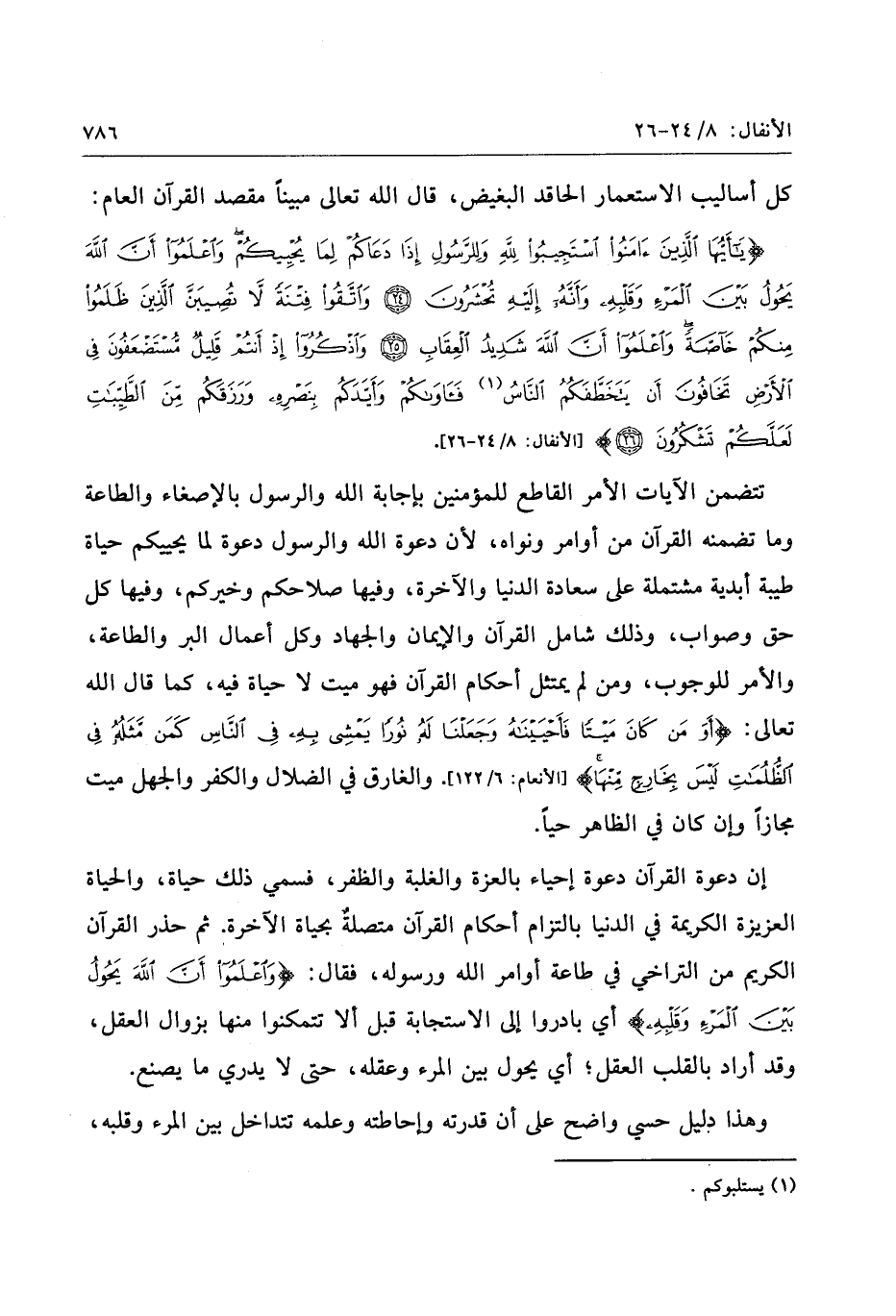 كل أساليب الاستعمار الحاقد البغيض، قال الله تعالى مبينا مقصد القرآن العام: