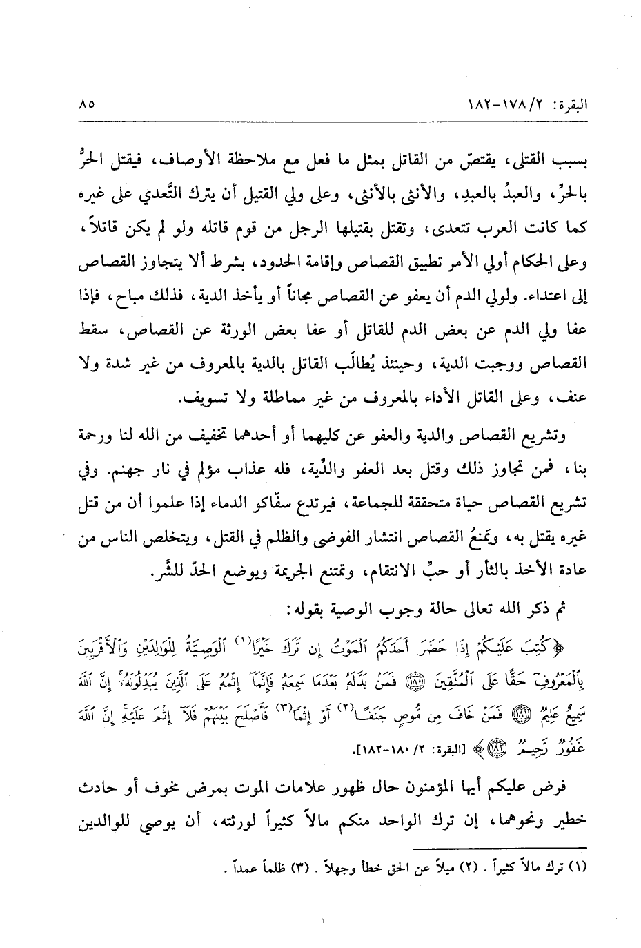 كُتِبَ عَلَيْكُمْ إِذا حَضَرَ أَحَدَكُمُ الْمَوْتُ إِنْ تَرَكَ خَيْراً الْوَصِيَّةُ لِلْوالِدَيْنِ وَالْأَقْرَبِينَ بِالْمَعْرُوفِ حَقًّا عَلَى الْمُتَّقِينَ (180) فَمَنْ بَدَّلَهُ بَعْدَ ما سَمِعَهُ فَإِنَّما إِثْمُهُ عَلَى الَّذِينَ يُبَدِّلُونَهُ إِنَّ اللَّهَ سَمِيعٌ عَلِيمٌ (181) فَمَنْ خافَ مِنْ مُوصٍ جَنَفاً أَوْ إِثْماً فَأَصْلَحَ بَيْنَهُمْ فَلا إِثْمَ عَلَيْهِ إِنَّ اللَّهَ غَفُورٌ رَحِيمٌ (182)