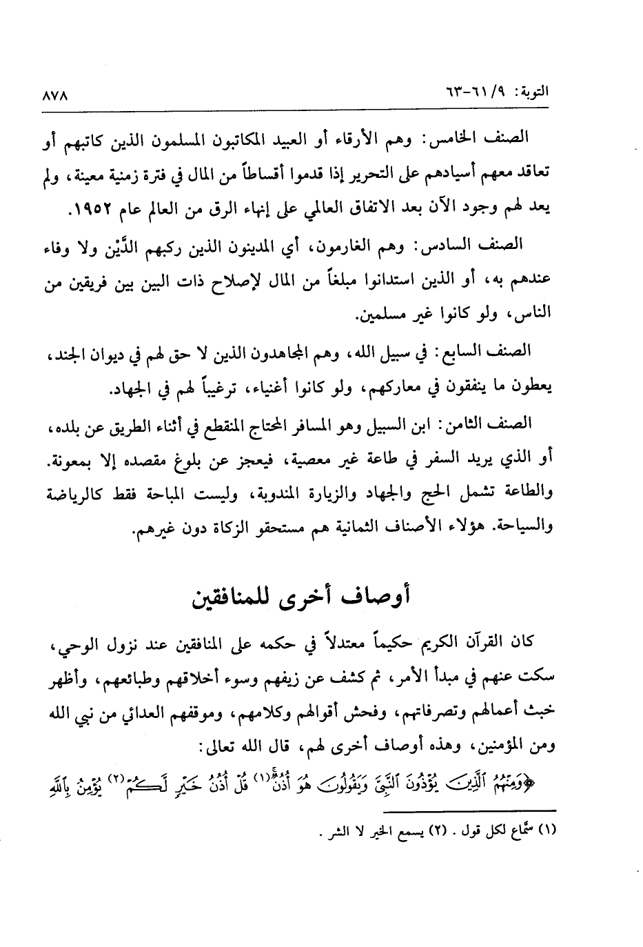 الصنف الخامس: وهم الأرقاء أو العبيد المكاتبون المسلمون الذين كاتبهم أو تعاقد معهم أسيادهم على التحرير إذا قدموا أقساطا من المال في فترة زمنية معينة، ولم يعد لهم وجود الآن بعد الاتفاق العالمي على إنهاء الرق من العالم عام 1952.