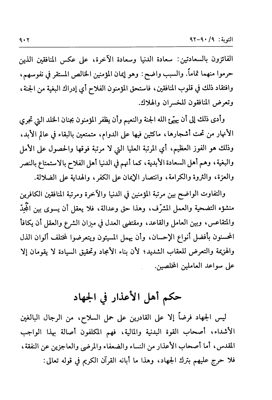 ليس الجهاد فرضا إلا على القادرين على حمل السلاح، من الرجال البالغين الأشداء، أصحاب القوة البدنية والمالية، فهم المكلفون أصالة بهذا الواجب المقدس، أما أصحاب الأعذار من النساء والضعفاء والمرضى والعاجزين عن النفقة، فلا حرج عليهم بترك الجهاد، وهذا ما أبانه القرآن الكريم في قوله تعالى: