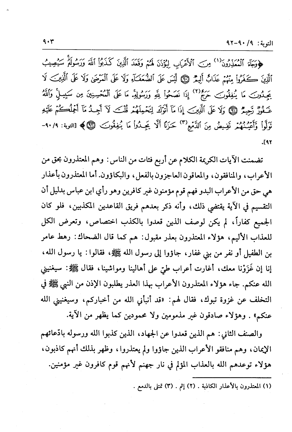 «1» «2» «3» [التوبة: 9/ 90- 92] .