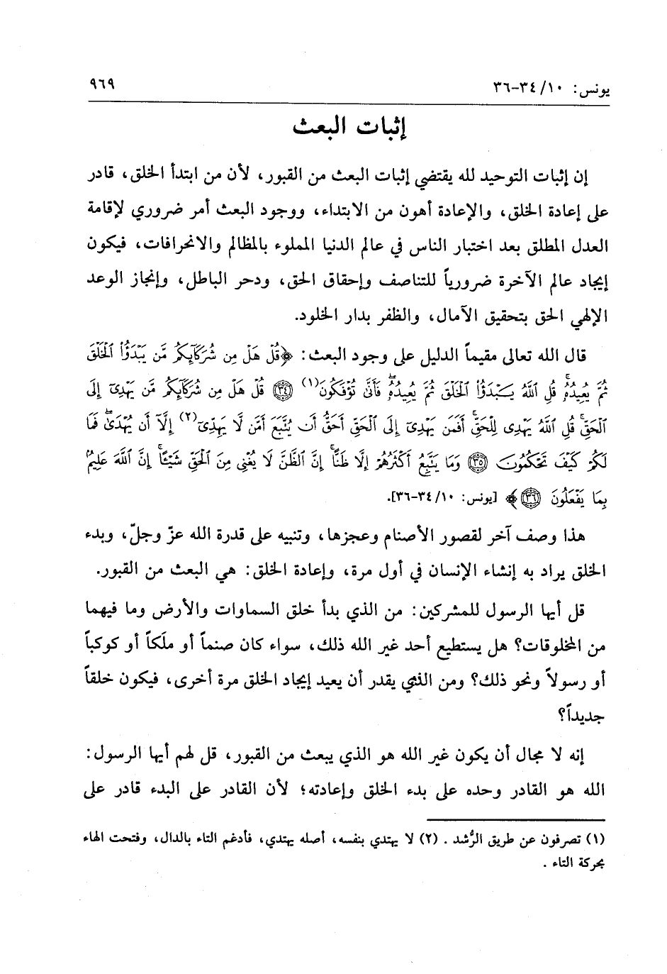 قُلْ هَلْ مِنْ شُرَكائِكُمْ مَنْ يَبْدَؤُا الْخَلْقَ ثُمَّ يُعِيدُهُ قُلِ اللَّهُ يَبْدَؤُا الْخَلْقَ ثُمَّ يُعِيدُهُ فَأَنَّى تُؤْفَكُونَ (34) قُلْ هَلْ مِنْ شُرَكائِكُمْ مَنْ يَهْدِي إِلَى الْحَقِّ قُلِ اللَّهُ يَهْدِي لِلْحَقِّ أَفَمَنْ يَهْدِي إِلَى الْحَقِّ أَحَقُّ أَنْ يُتَّبَعَ أَمَّنْ لا يَهِدِّي إِلاَّ أَنْ يُهْدى فَما لَكُمْ كَيْفَ تَحْكُمُونَ (35) وَما يَتَّبِعُ أَكْثَرُهُمْ إِلاَّ ظَنًّا إِنَّ الظَّنَّ لا يُغْنِي مِنَ الْحَقِّ شَيْئاً إِنَّ اللَّهَ عَلِيمٌ بِما يَفْعَلُونَ (36)