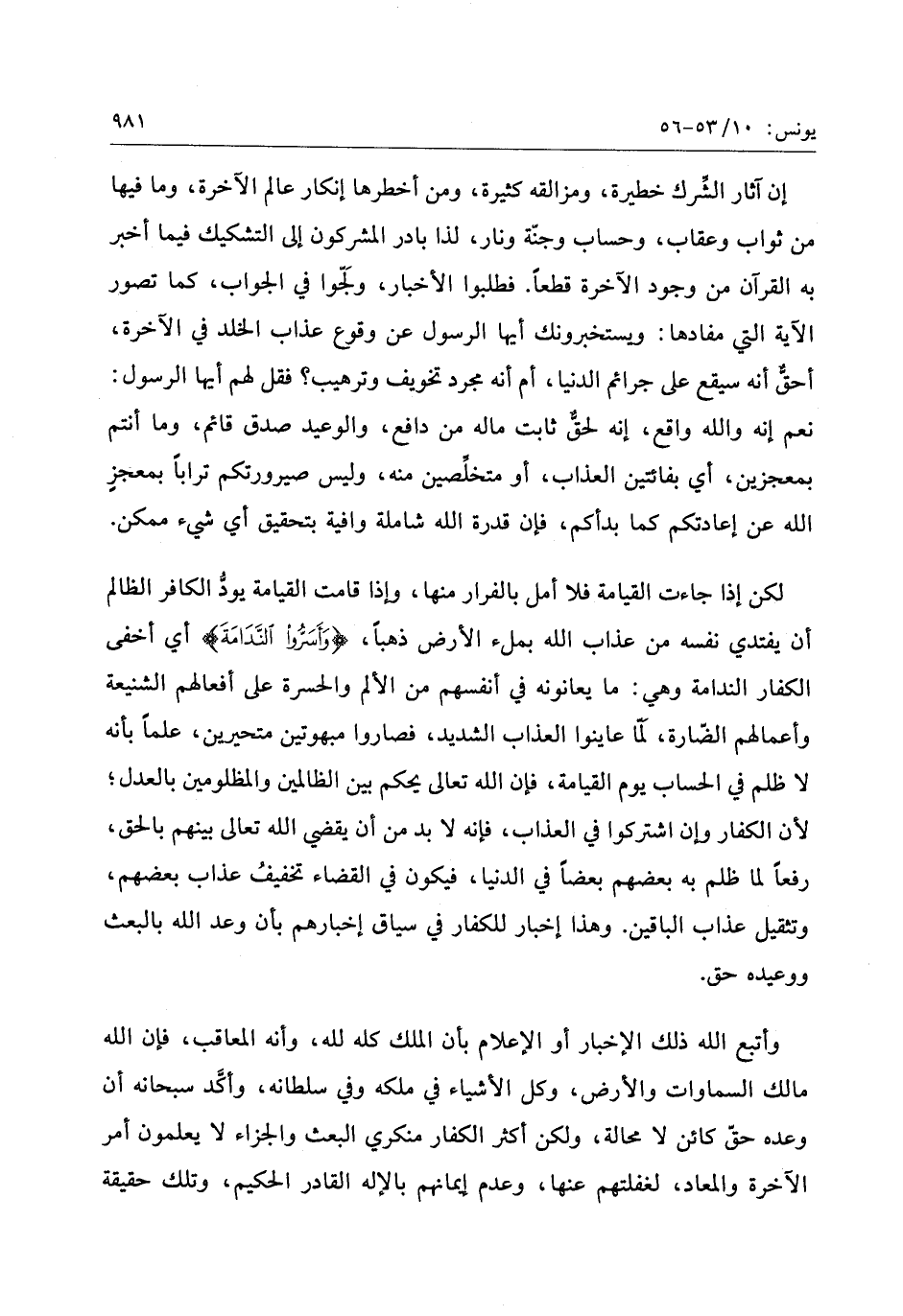 إن آثار الشّرك خطيرة، ومزالقه كثيرة، ومن أخطرها إنكار عالم الآخرة، وما فيها من ثواب وعقاب، وحساب وجنّة ونار، لذا بادر المشركون إلى التشكيك فيما أخبر به القرآن من وجود الآخرة قطعا. فطلبوا الأخبار، ولجّوا في الجواب، كما تصور الآية التي مفادها: ويستخبرونك أيها الرسول عن وقوع عذاب الخلد في الآخرة، أحقّ أنه سيقع على جرائم الدنيا، أم أنه مجرد تخويف وترهيب؟ فقل لهم أيها الرسول: