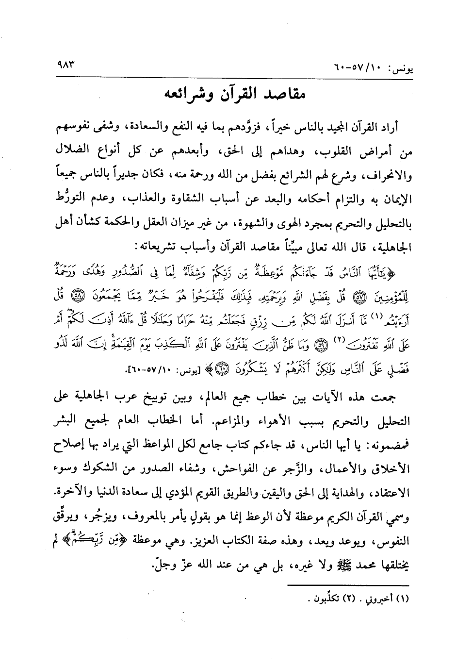 يا أَيُّهَا النَّاسُ قَدْ جاءَتْكُمْ مَوْعِظَةٌ مِنْ رَبِّكُمْ وَشِفاءٌ لِما فِي الصُّدُورِ وَهُدىً وَرَحْمَةٌ لِلْمُؤْمِنِينَ (57) قُلْ بِفَضْلِ اللَّهِ وَبِرَحْمَتِهِ فَبِذلِكَ فَلْيَفْرَحُوا هُوَ خَيْرٌ مِمَّا يَجْمَعُونَ (58) قُلْ أَرَأَيْتُمْ ما أَنْزَلَ اللَّهُ لَكُمْ مِنْ رِزْقٍ فَجَعَلْتُمْ مِنْهُ حَراماً وَحَلالاً قُلْ آللَّهُ أَذِنَ لَكُمْ أَمْ عَلَى اللَّهِ تَفْتَرُونَ (59) وَما ظَنُّ الَّذِينَ يَفْتَرُونَ عَلَى اللَّهِ الْكَذِبَ يَوْمَ الْقِيامَةِ إِنَّ اللَّهَ لَذُو فَضْلٍ عَلَى النَّاسِ وَلكِنَّ أَكْثَرَهُمْ لا يَشْكُرُونَ (60)