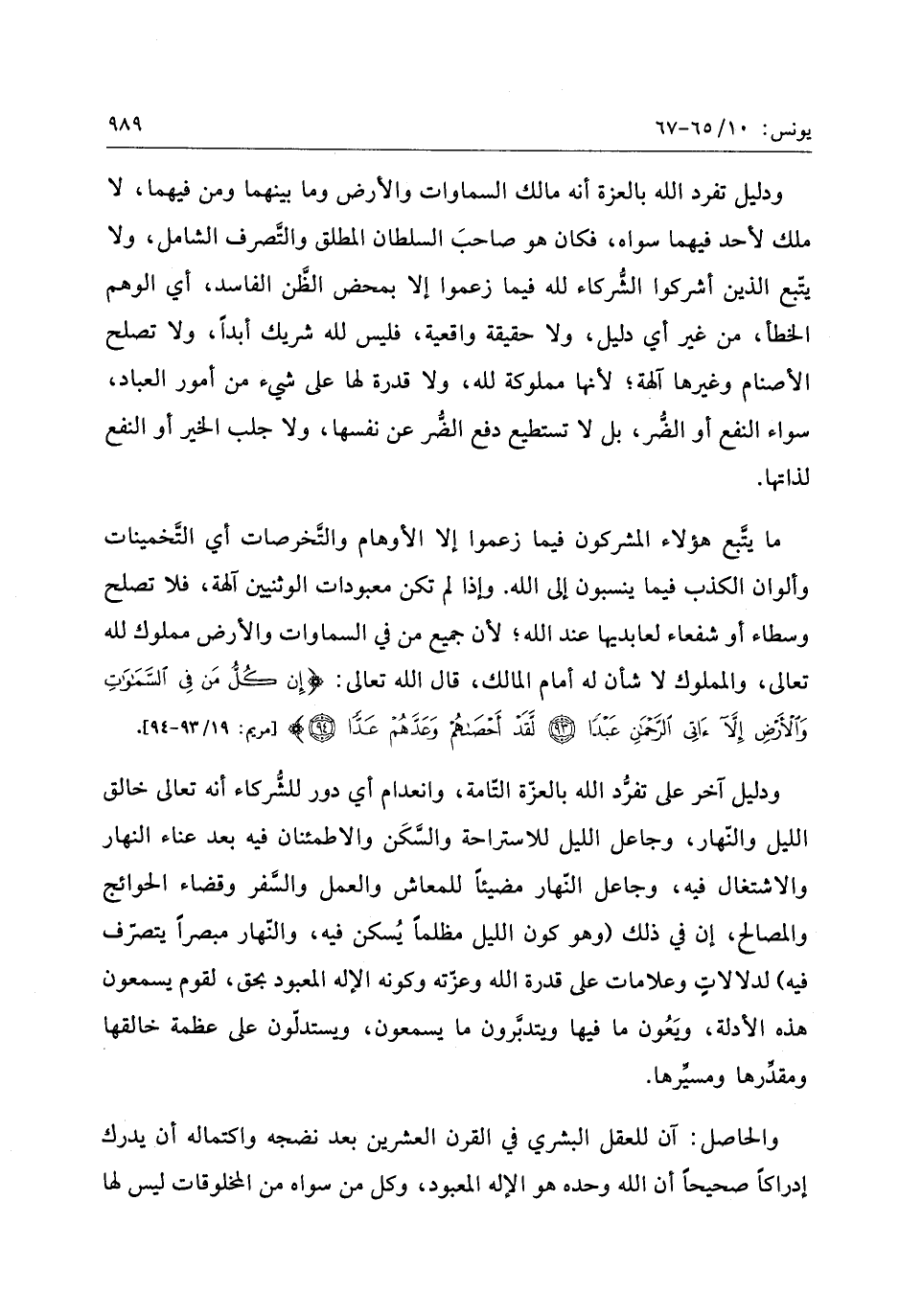 والحاصل: ان للعقل البشري في القرن العشرين بعد نضجه واكتماله أن يدرك إدراكا صحيحا أن الله وحده هو الإله المعبود، وكل من سواه من المخلوقات ليس لها