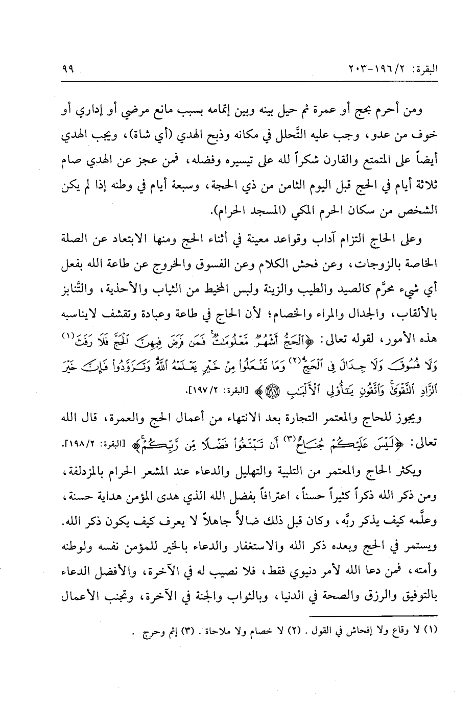 الْحَجُّ أَشْهُرٌ مَعْلُوماتٌ فَمَنْ فَرَضَ فِيهِنَّ الْحَجَّ فَلا رَفَثَ وَلا فُسُوقَ وَلا جِدالَ فِي الْحَجِّ وَما تَفْعَلُوا مِنْ خَيْرٍ يَعْلَمْهُ اللَّهُ وَتَزَوَّدُوا فَإِنَّ خَيْرَ الزَّادِ التَّقْوى وَاتَّقُونِ يا أُولِي الْأَلْبابِ (197)