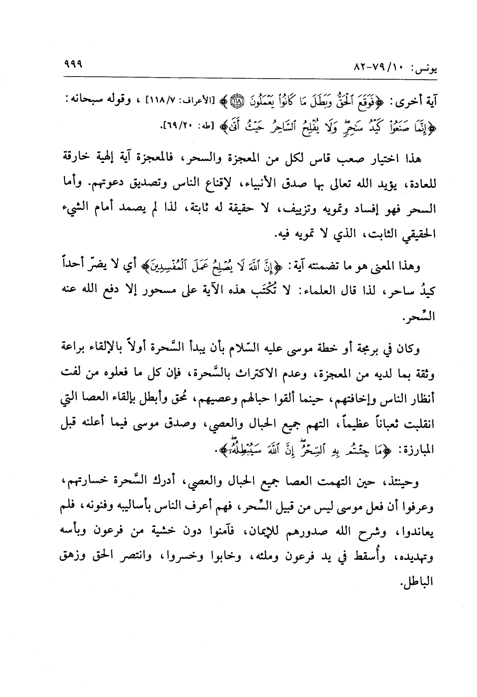 وهذا المعنى هو ما تضمنته آية: إِنَّ اللَّهَ لا يُصْلِحُ عَمَلَ الْمُفْسِدِينَ أي لا يضرّ أحدا كيد ساحر، لذا قال العلماء: لا تكتب هذه الآية على مسحور إلا دفع الله عنه السّحر.