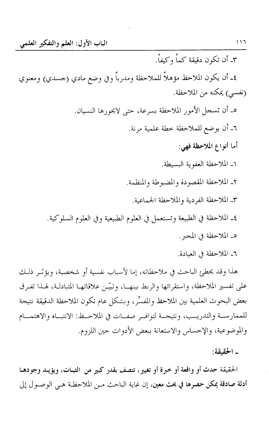 الحقيقة حدث أو واقعة أو خبرة أو تغيير تتصف بقدر كبير من الثبات، ويؤيد وجودها أدلة صادقة يمكن حصرها في بحث معين، إن غاية البحث من الملاحظة هي الوصول إلى
