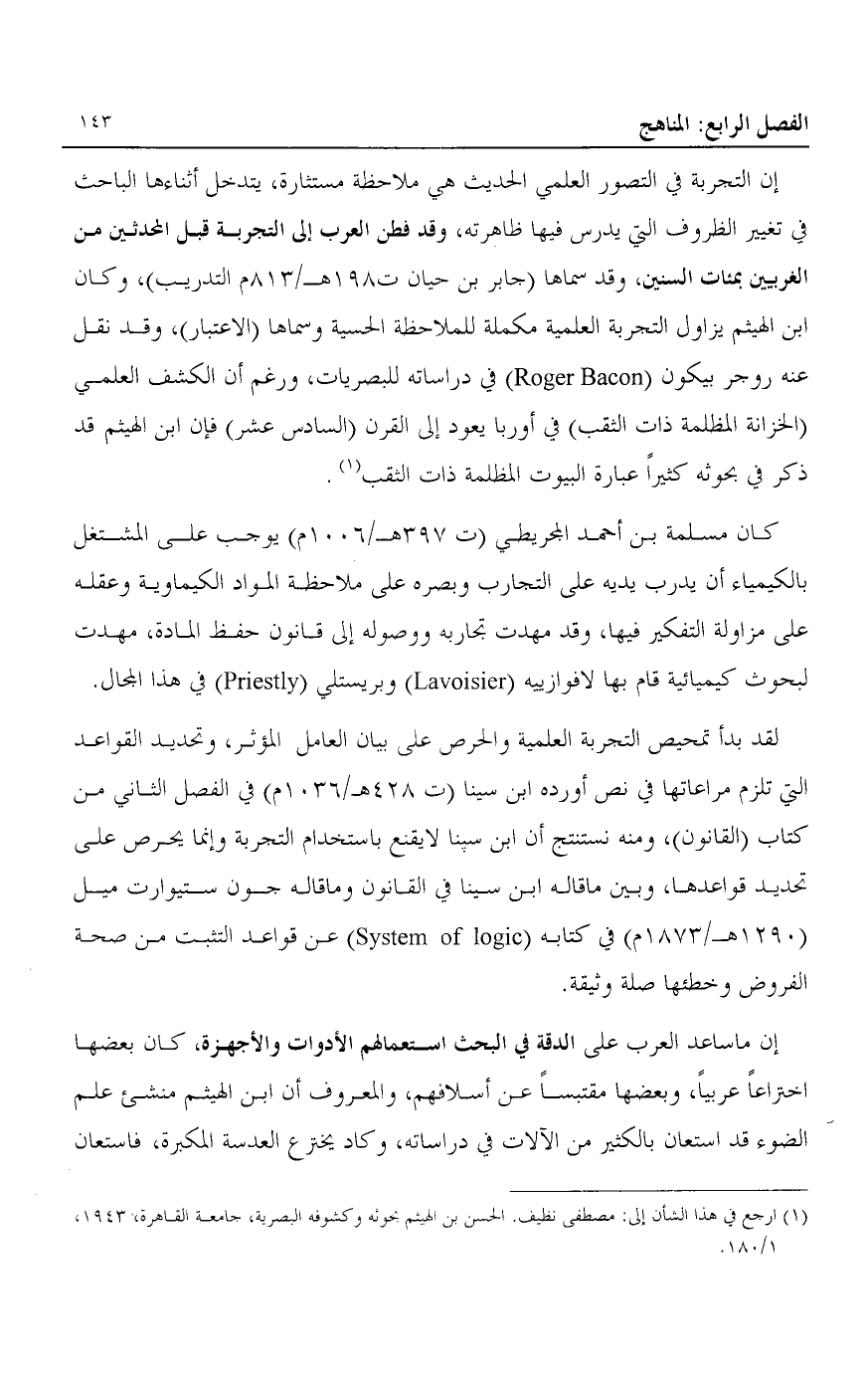 1 ارجع في هذا الشأن إلى: مصطفى نظيف. الحسن بن الهيثم بحوثه وكشوفه البصرية، جامعة القاهرة 1943، 1/ 180.