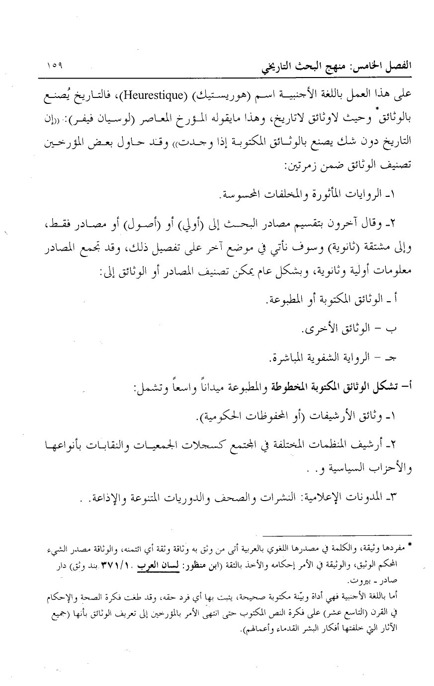 على هذا العمل باللغة الأجنبية اسم "هوريستيك" "Heurestique" فالتاريخ يُصنع بالوثائق1 وحيث لا وثائق لا تاريخ، وهذا ما يقوله المؤرخ المعاصر "لوسيان فيفر": "إن التاريخ دون شك يصنع بالوثائق المكتوبة إذا وجدت" وقد حاول بعض المؤرخين تصنيف الوثائق ضمن زمرتين: