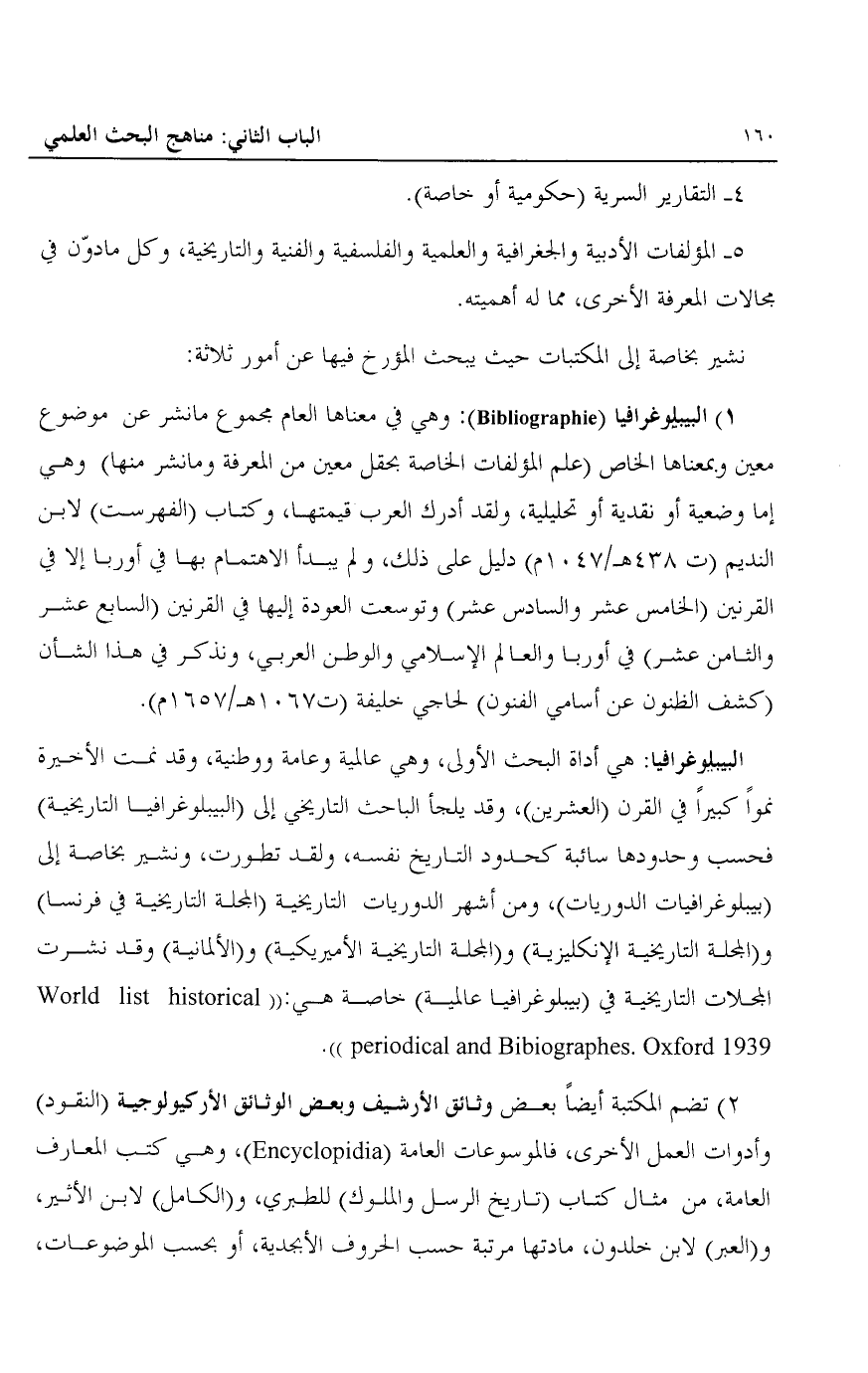 نشير بخاصة إلى المكتبات حيث يبحث المؤرخ فيها عن أمور ثلاثة: