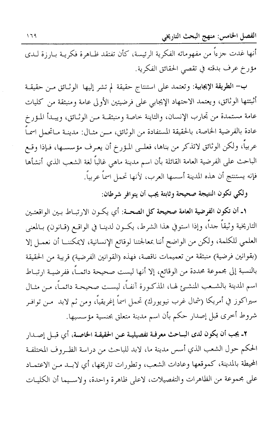 2- يجب أن يكون لدى الباحث معرفة تفصيلية عن الحقيقة الخاصة، أي قبل إصدار الحكم حول الشعب الذي أسس مدينة ما، لا بد للباحث من دراسة الظروف المختلفة المحيطة بالمدينة، كموقعها وعادات الشعب، وتطورات تاريخها، أي لا بد من الاعتماد على مجموعة من الظاهرات والتفصيلات، لا على ظاهرة واحدة، ولا سيما أن الكليات
