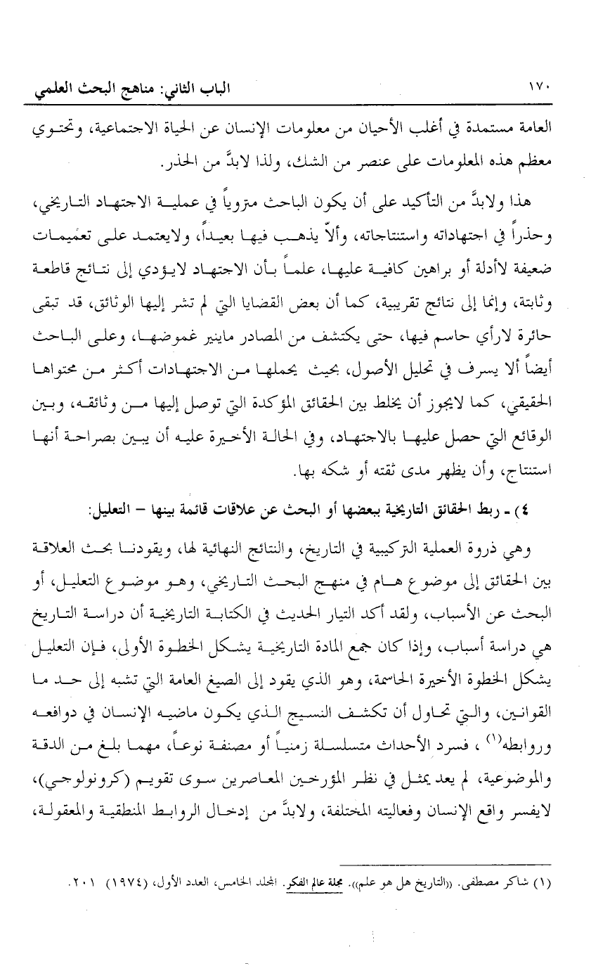 1 شاكر مصطفى، "التاريخ هل هو علم" مجلة عالم الفكر. المجلد الخامس. العدد الأول، "1974" 201.