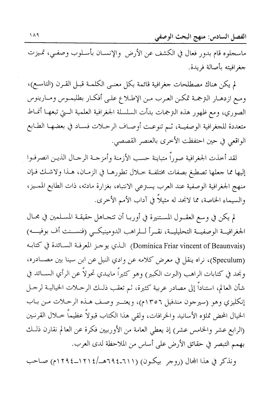 لم يكن في وسع العقول المستنيرة في أوروبا أن تتجاهل حقيقة المسلمين في مجال الجغرافية الوصفية التحليلية، نقرأ للراهب الدومينيكي "فنسنت أف بوفيه" "Dominical Friar Vincent of Beaunvais" الذي يوجز المعرفة السائدة في كتابه "Speculum"، نراه ينقل في معرض كلامه عن وادي النيل عن ابن سينا بين مصادره، ونجد في كتابات الراهب "ألبرت الكبير" وهو كثيرا ما يبدي تحولا عن الرأي السائد في شأن العالم، استنادا إلى مصادر عربية كثيرة، ثم تعقب ذلك الرحلات الخيالية لرجل إنكليزي وهو "سيرجون مندفيل 1356م"، ويعتبر وصف هذه الرحلات من باب الخيال المحض تملؤه الأسانيد والخرافات، ولقي هذا الكتاب قبولا عظيما خلال القرنين "الرابع عشر والخامس عشر" إذ يعطي العامة من الأوروبيين فكرة عن العالم نقارن ذلك بهمم التبصر في حقائق الأرض على أساس من الملاحظة لدى العرب.