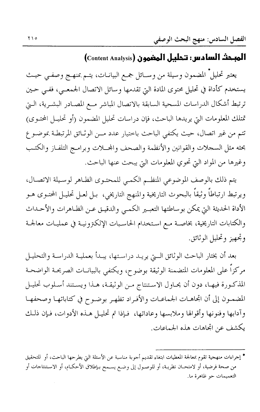 المبحث السادس: تحليل المضمون "Content Analysis"