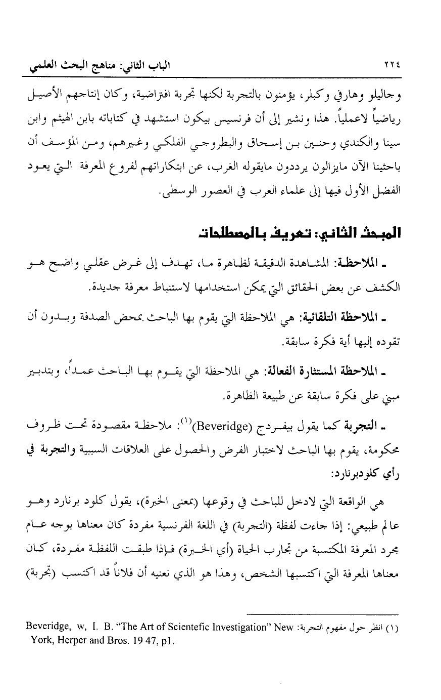 1 انظر حول مفهوم التجربة: Beveridge, w, I. B. "The Art of scientefic Investigation" New York Harper and Bros. 1947, pi.