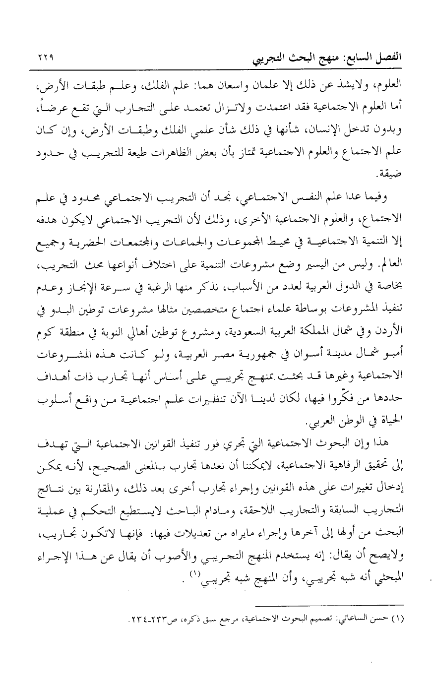 1 حسن الساعاتي: تصميم البحوث الاجتماعية، مرجع سبق ذكره، ص233-234.