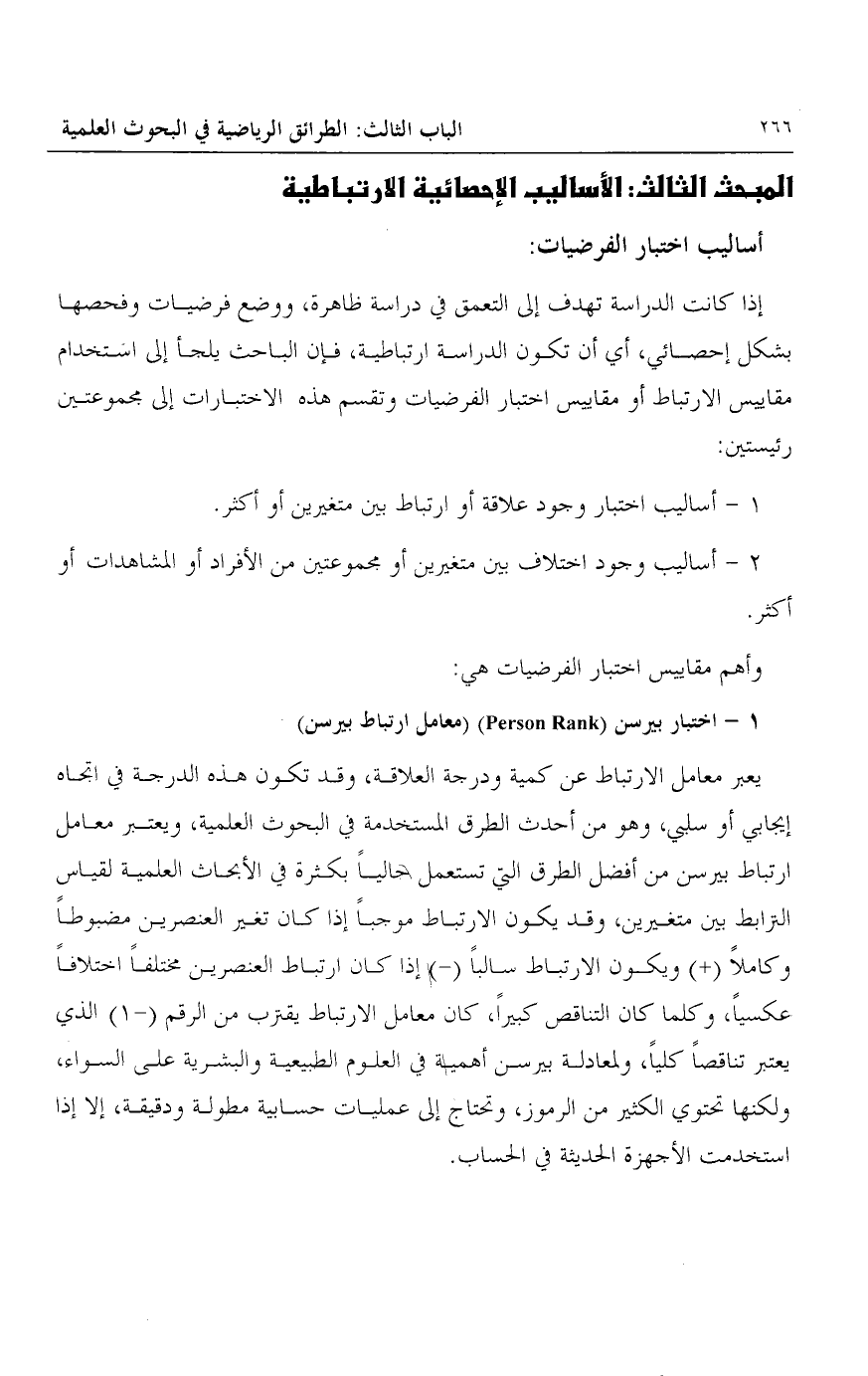 المبحث الثالث: الأساليب الإحصائية الارتباطية