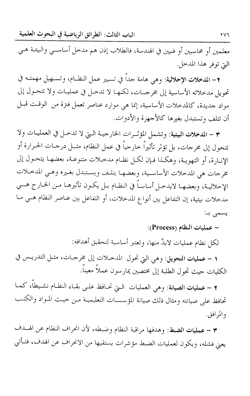 2- عمليات الصيانة: وهي العمليات التي تحافظ على بقاء النظام نشيطا، كما تحافظ على صيانته ومثال صيانة المؤسسات التعليمية من حيث المواد والكتب والمرافق.