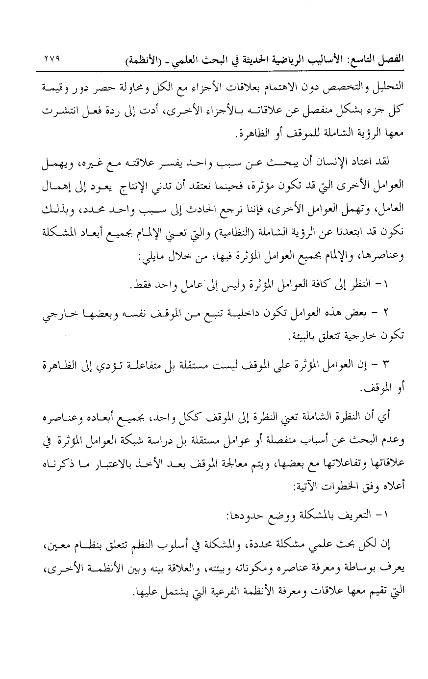 إن لكل بحث علمي مشكلة محددة، والمشكلة في أسلوب النظم تتعلق بنظام معين، يعرف بوساطة ومعرفة عناصره ومكوناته وبيئته، ولعلاقة بينه وبين الأنظمة الأخرى، التي تقيم معها علاقات ومعرفة الأنظمة الفرعية التي يشتمل عليها.