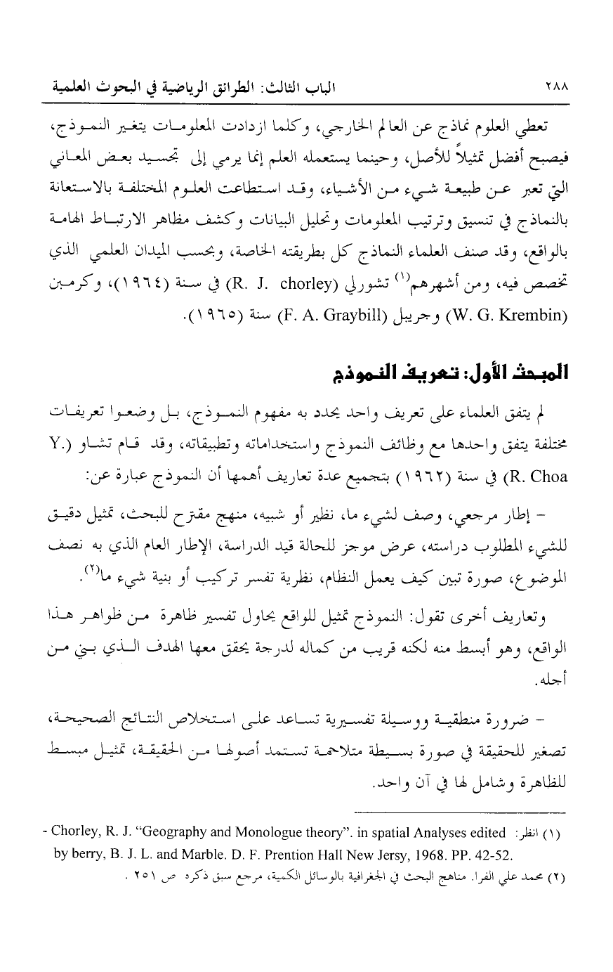 1انظر: Chorley. R. J. "Geography and Monolgue theory". in spatial Analyses edited by berry, B. J. L and marble D. F. prention Hall new Jersy. 1968. pp. 42-52.