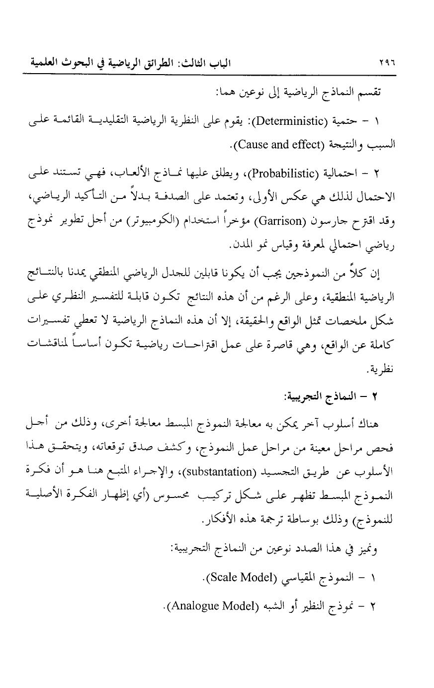 تقسيم النماذج الرياضية إلى نوعين هما: