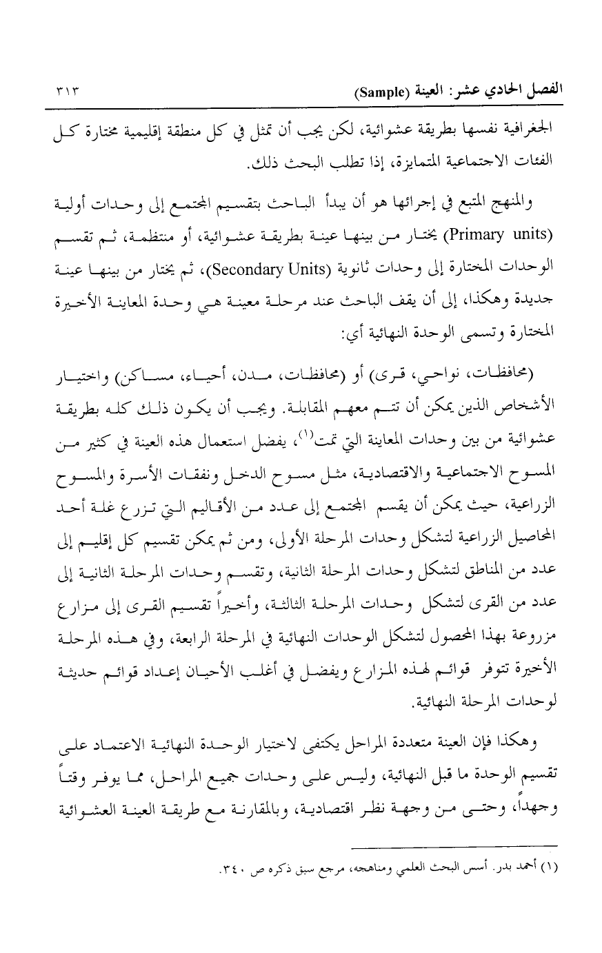 1 أحمد بدر. أسس البحث العلمي ومناهجه، مرجع سبق ذكره ص340.