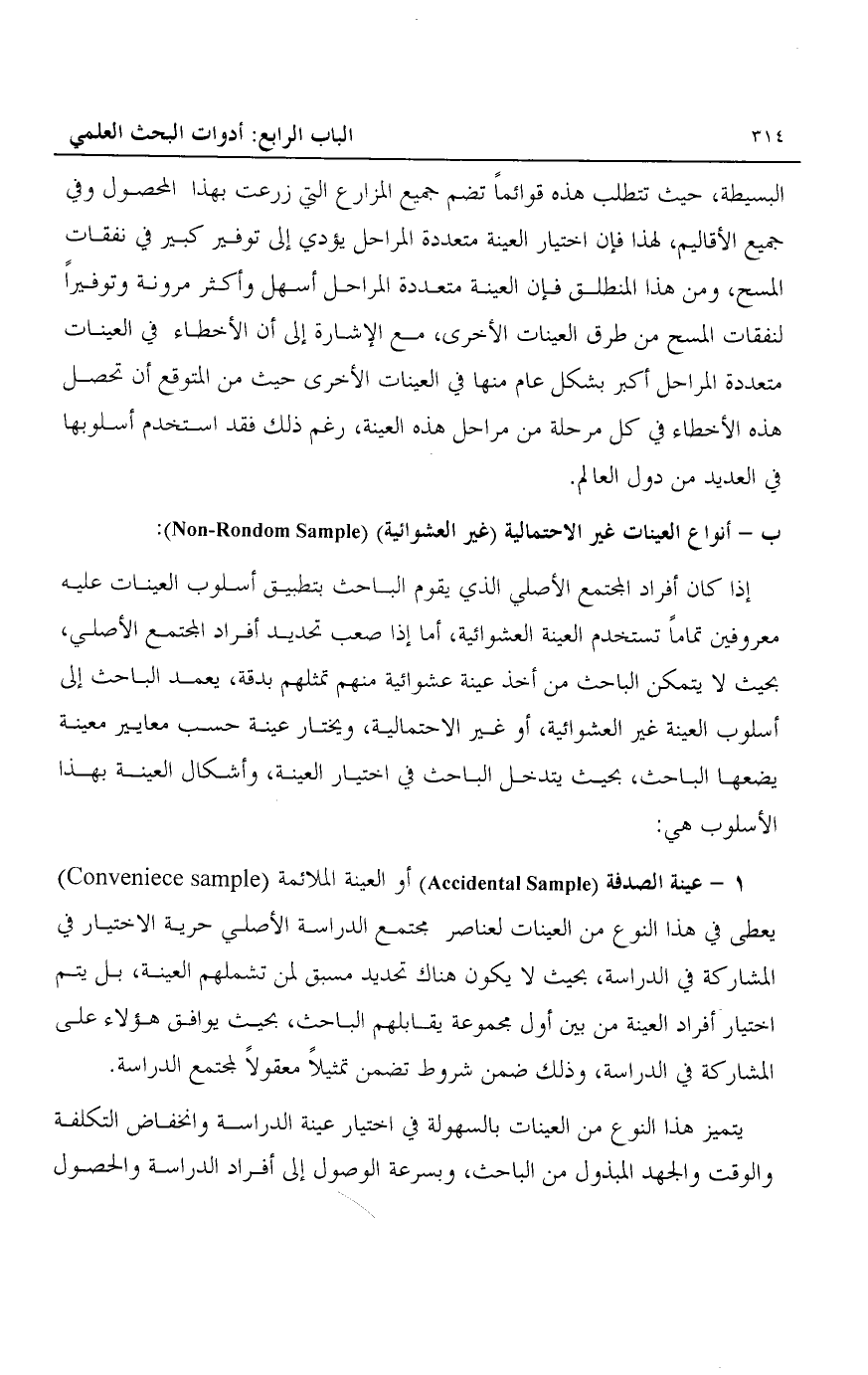 ب- أنواع العينات غير الاحتمالية "غير العشوائية" "Non-Rondom Sample":