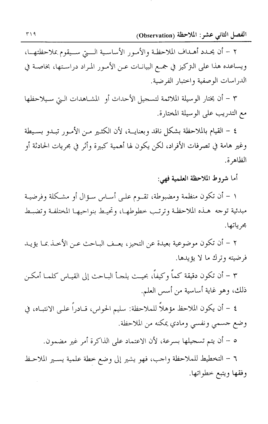 6- التخطيط للملاحظة واجب، فهو يشير إلى وضع خطة علمية يسير الملاحظ وفقها ويتبع خطواتها.