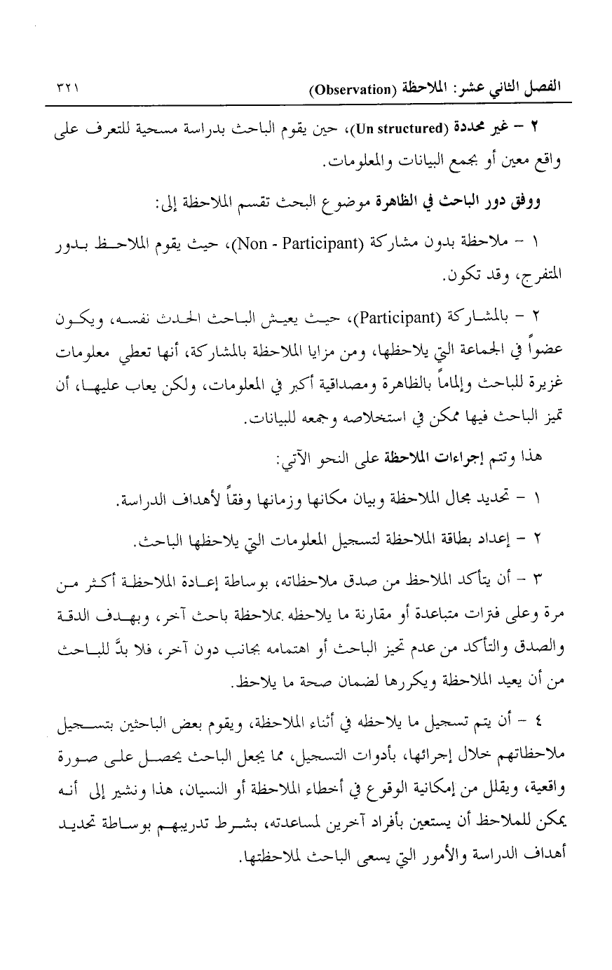 1- ملاحظة بدون مشاركة "Non-participant"، حيث يقوم الملاحظ بدور المتفرج، وقد تكون.