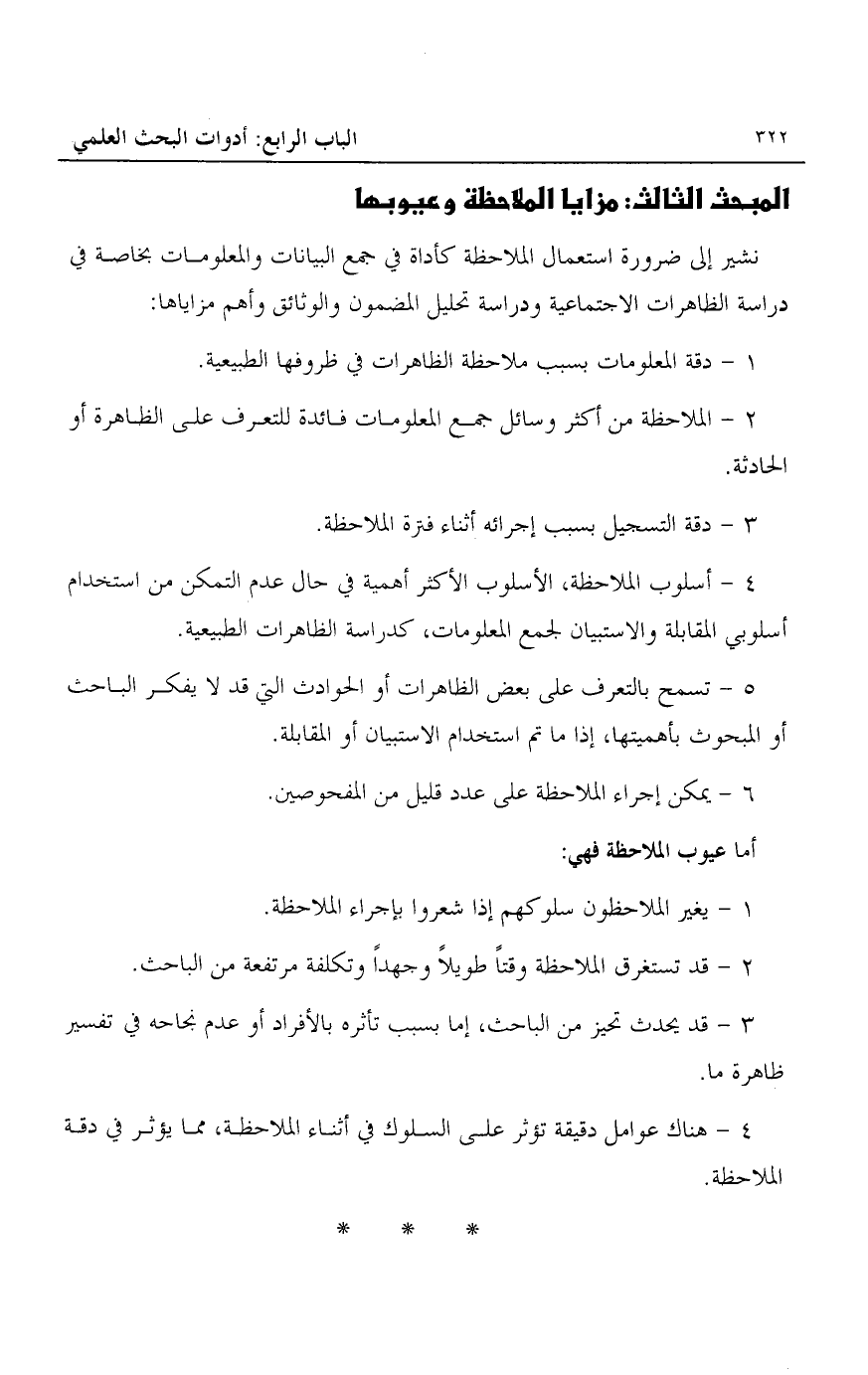 المبحث الثالث: مزايا الملاحظة وعيوبها